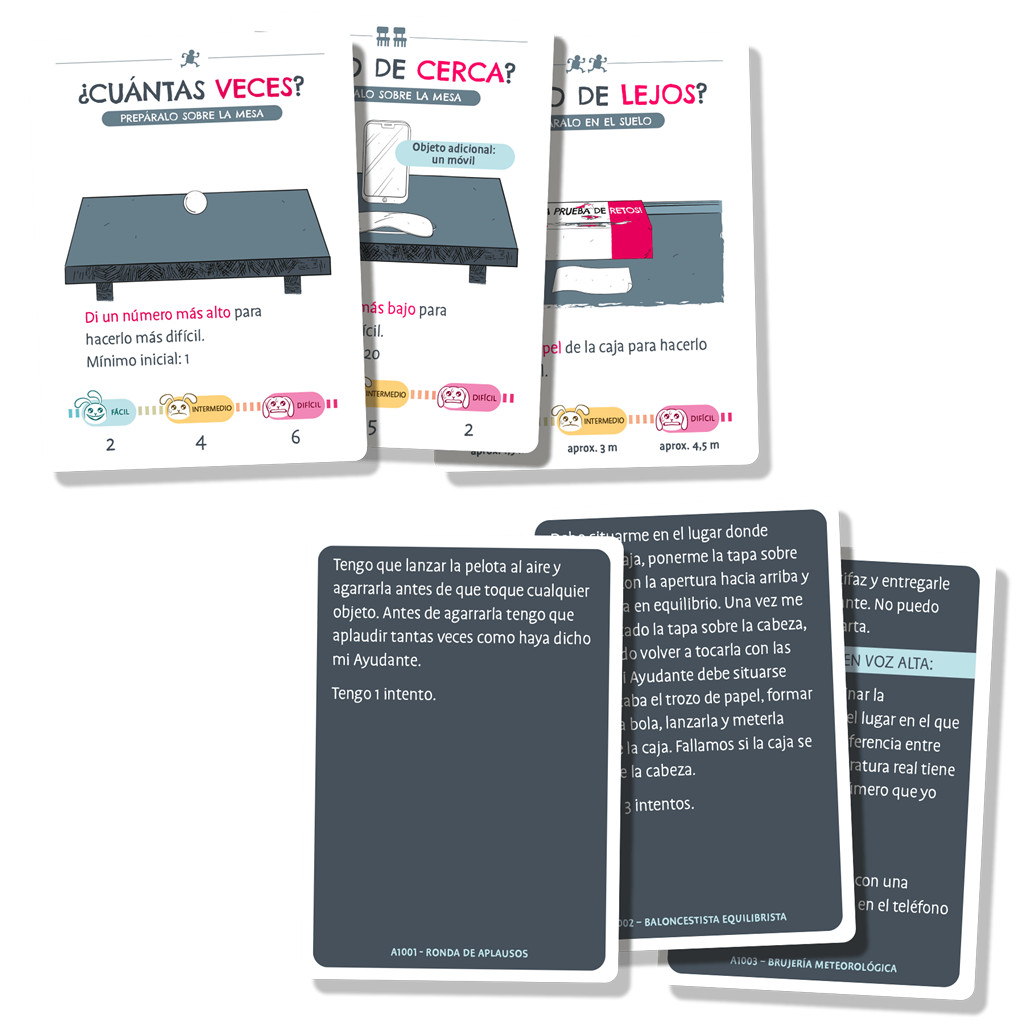 Los retos son fáciles. Antes de que empieces el reto, tus amigos te lo pondrán más difícil. Quien lo haga más difícil se convertirá en tu Ayudante. Si realizas el reto con éxito, ambos os lleváis puntos. Si fallas, todos los demás se llevan los puntos.