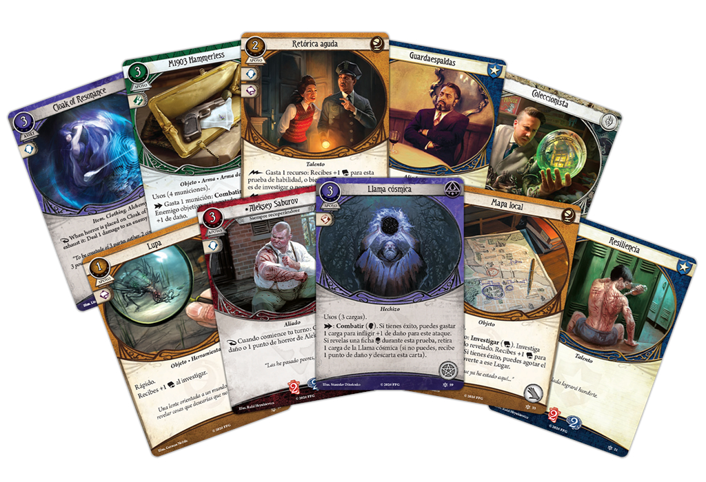 Como dijimos antes, el tiempo ha pasado en la narrativa de Arkham Horror. Debido a ello, las expansiones del Capítulo Dos incluirán entre sus investigadores una mezcla de nuevas caras y viejos amigos. No obstante, aunque algunos personajes regresen, verás que tienen nuevas puntuaciones, capacidades o restricciones para la construcción de mazos, haciéndolos investigadores casi totalmente nuevos. Al fin y al cabo, la gente cambia con el tiempo.
