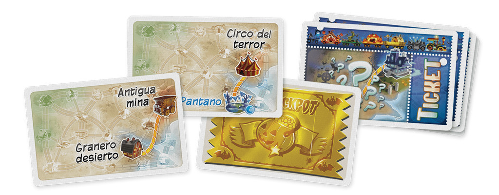 En esta horripilante edición del clásico ¡Aventureros al Tren! Primeros viajes, padres e hijos tendrán que conseguir cartas de Carroza de desfile, cubrir Recorridos en el tablero e intentar visitar las distintas Localizaciones de este espeluznante pueblo.