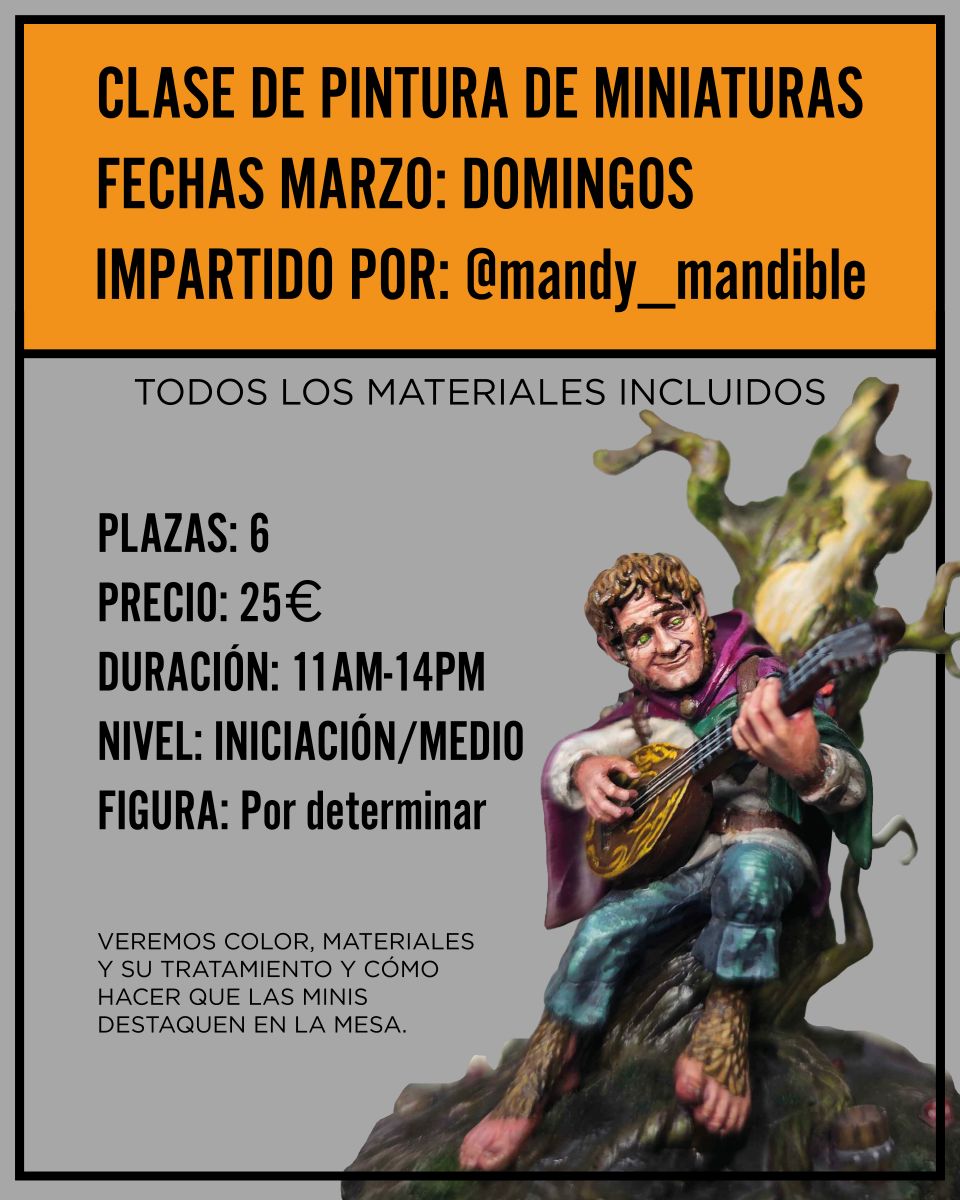 Tras el éxito del primer curso de pintura de miniaturas abrimos nuevas plazas para 3 domingos de marzo, los días 15, 22 y 29. Y ampliamos las plazas para cada domingo, ¡seréis máximo 6!