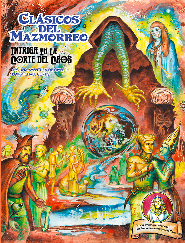 Intriga en la Corte del Caos abraza una de las diferencias fundamentales que hacen único a Clásicos del Mazmorreo entre otros juegos de rol de fantasía: ¡no hay necesidad de esperar a que los PJ se conviertan en héroes de gran nivel para poder embarcarse en aventuras que se extienden por el cosmos! En esta aventura los enemigos de los PJ no son simples goblins que saquean comunidades agrícolas, sino entidades extraplanares, algunas de las cuales intervienen de forma directa en la disputa entre las fuerzas de la Ley, el Caos, y la Neutralidad. Desde su mismo comienzo, Intriga en la Corte del Caos envía a los PJ a viajar por el multiverso, a visitar los Planos del Caos y la Ley, y a negociar (y a veces combatir) con los seres extraterrenos que llaman hogar a esas dimensiones. ¡Está muy lejos de ser otro combate con unos kobolds por un puñado de piezas de cobre!
