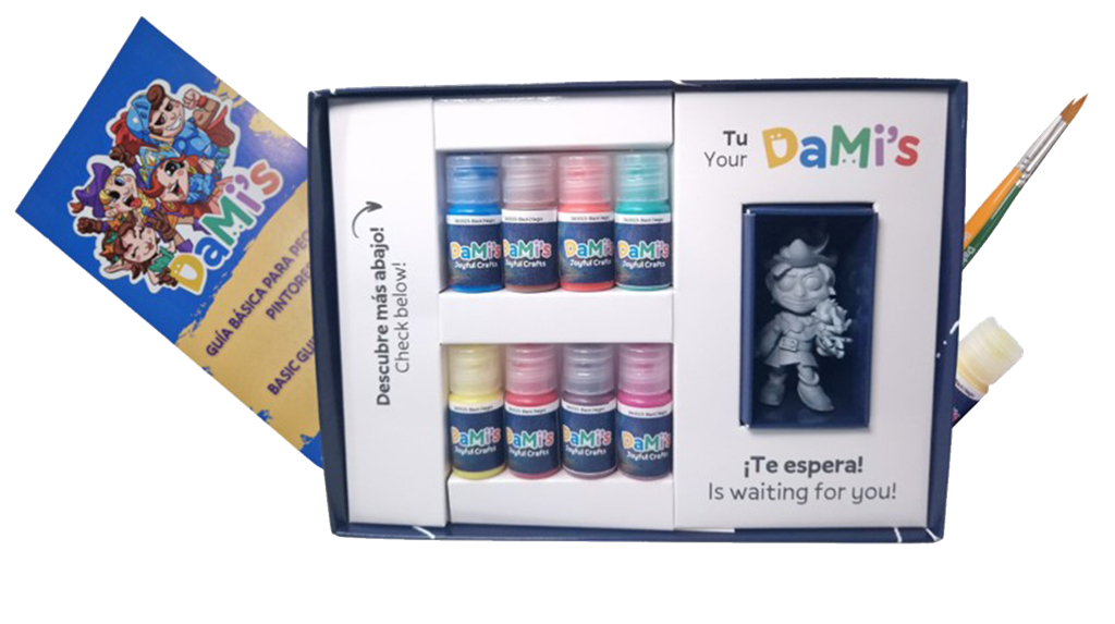 - 1 figura exclusiva de un personaje del mundo de Dami’s, lista para pintar.