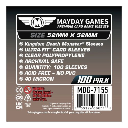 100 fundas tamaño 52 x 52 (Kingdom Death Monster) marca Mayday.