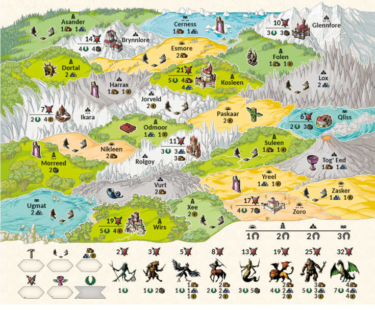 Mueve a través de regiones para reunir recursos y artefactos, captura fortalezas y lucha contra monstruos o contra otros jugadores. Construye estructuras para hacer a tus tropas más fuertes y rápidas. Héroes ofrece muchos caminos diferentes para ganar puntos de victoria. El jugador que tenga más puntos de victoria al final de las 16 rondas, será el ganador del juego.