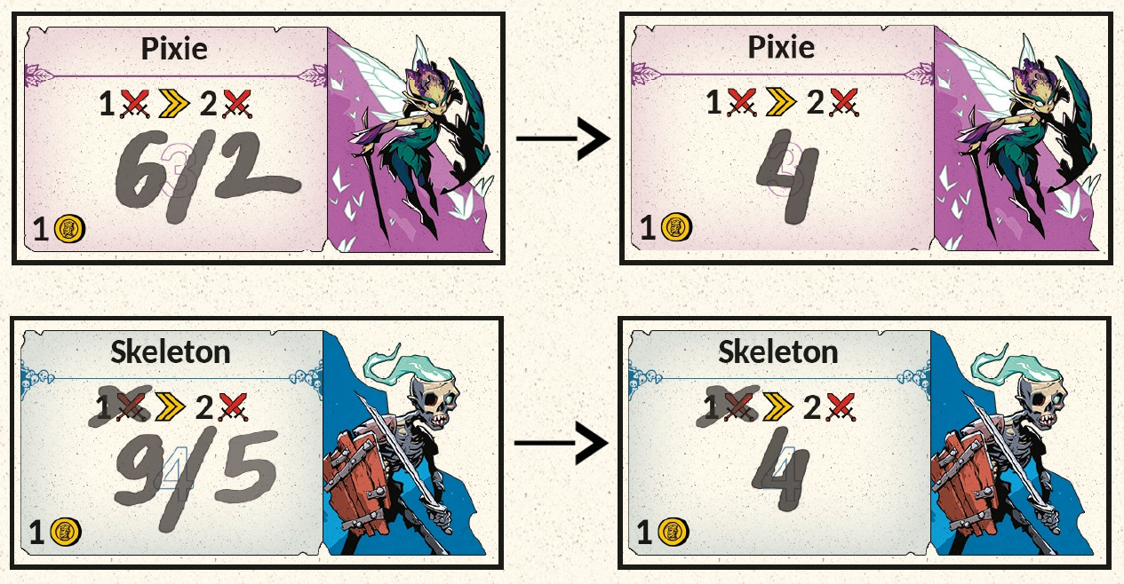 Para ganar una batalla, el poder de tus unidades debe superar en al menos 1 el valor del poder de tu oponente. Sin importar el resultado de la batalla, todas las unidades participantes (desplegadas) se gastan y se consideran eliminadas. Corrige su número en tu tablero.