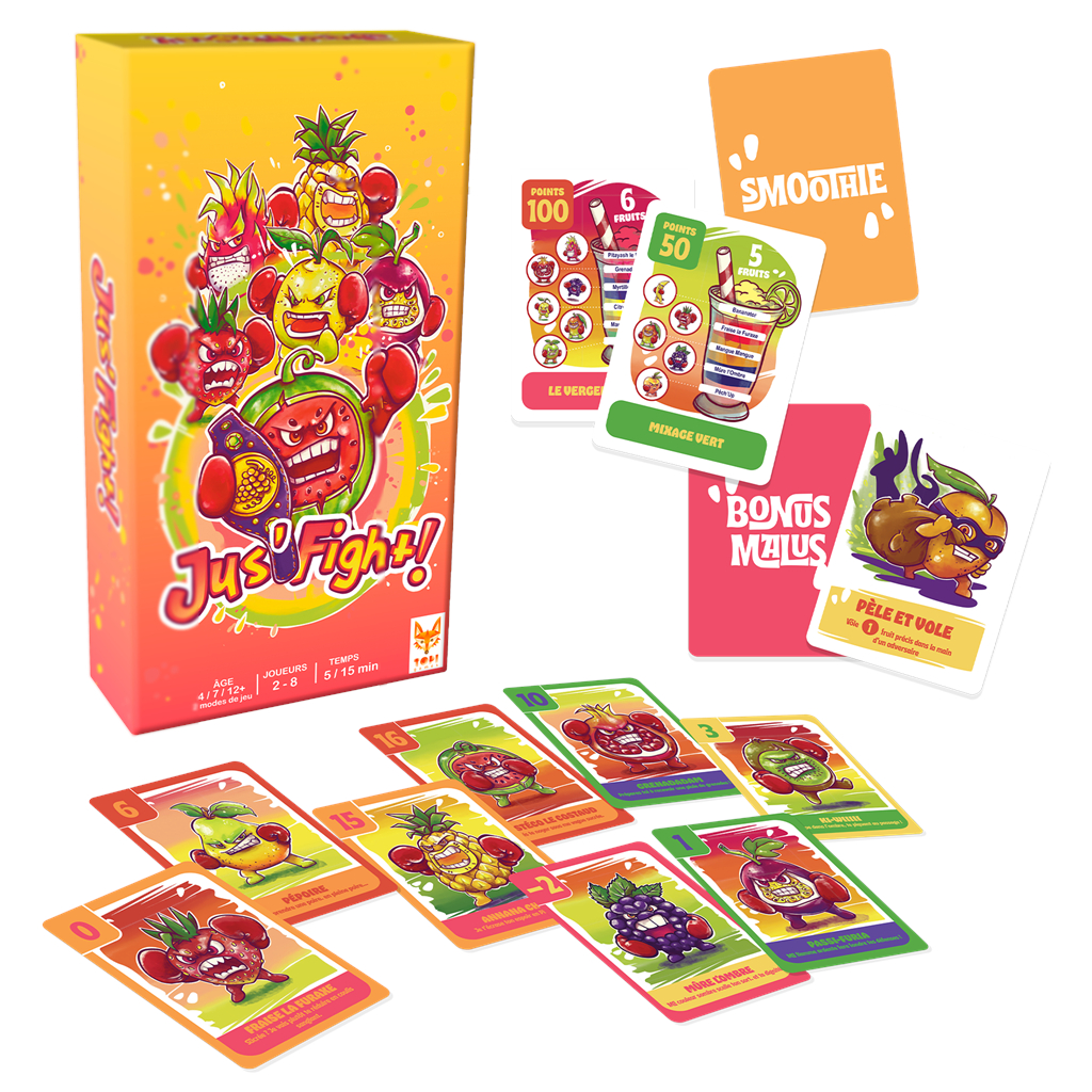 - Batalla (a partir de 4 años):¡La versión más frutal del gran clásico! Revela tus cartas, ¡la más fuerte se lleva el truco!