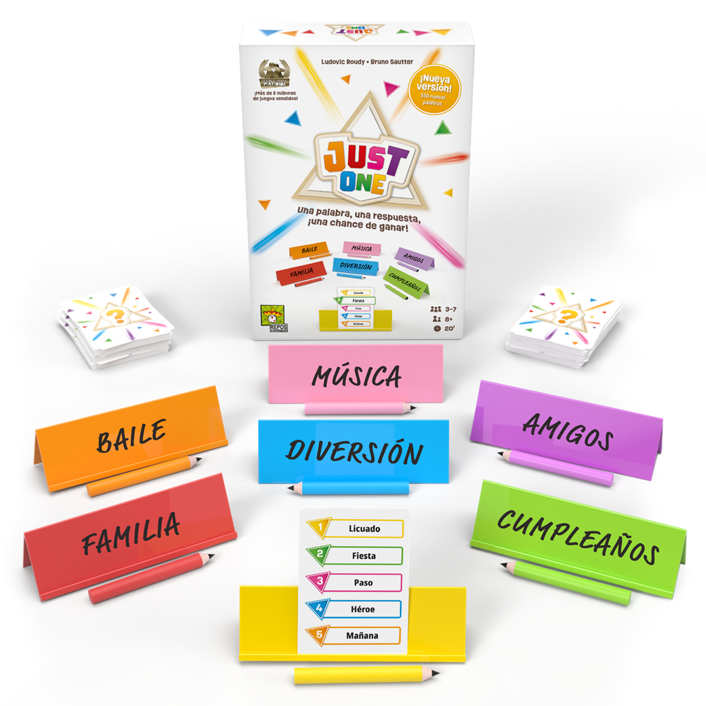 Just One es un party game cooperativo. ¡Todos los participantes juegan para conseguir la mejor puntuación! Juntos, los jugadores tienen que hacer que uno de ellos (el jugador activo) adivine una palabra misteriosa, escribiendo en secreto una pista en sus atriles.