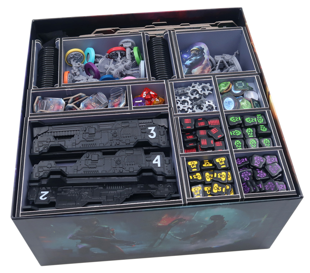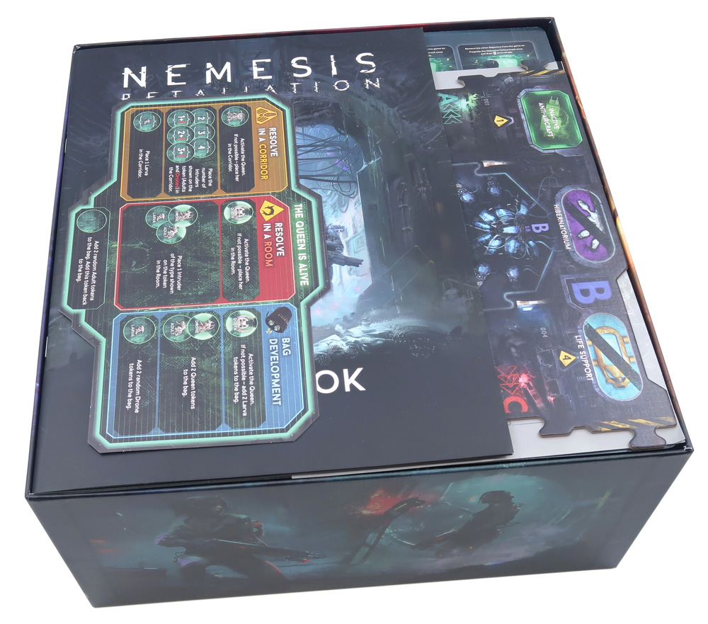 Inserto a todo color compatible con Nemesis: Represalia® con espacio para fichas acrílicas Core Box®, fichas y cartas Untold Stories #4®, Stretch Goals® (excepto Neoflesh Cult) y expansiones Support Squad®.