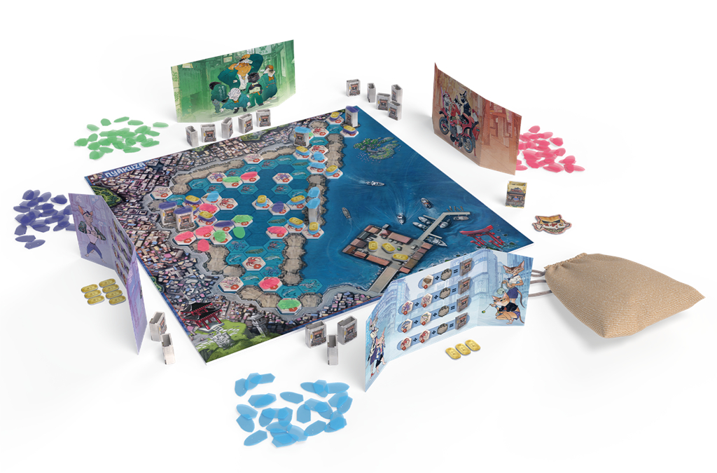 Nyakuza es un juego competitivo para 2-4 participantes en el que intentarás erigir tu imperio pesquero.