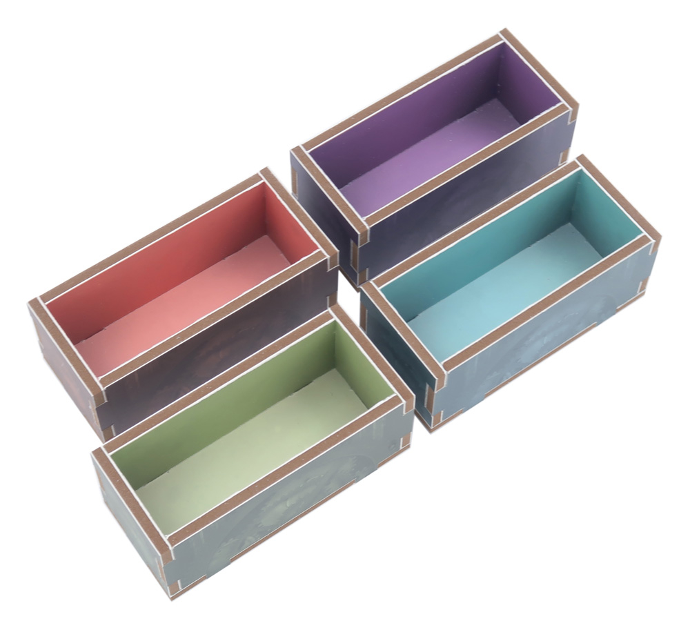 La impresión a todo color realmente da vida a las bandejas, vinculándolas con la temática del juego y facilitando la identificación de dónde van cada uno de los componentes.