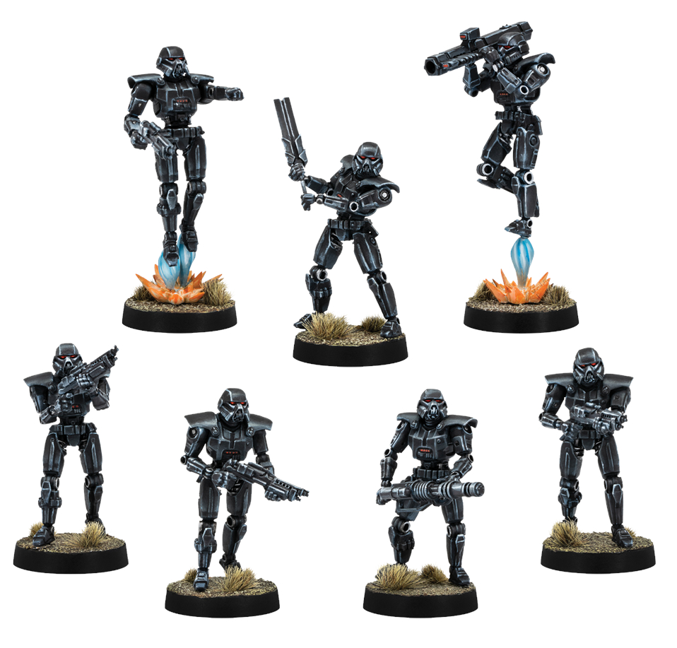 Sus botas propulsoras les permiten elevarse por los aires para caer sobre sus blancos y desplegarse en combate arrojándose directamente desde sus naves. Enfrentarse a un soldado oscuro supone una sentencia de muerte para la mayoría de los combatientes. Sólo los guerreros o estrategas más formidables pueden aspirar a vencer a todo un pelotón de estas mortíferas máquinas.