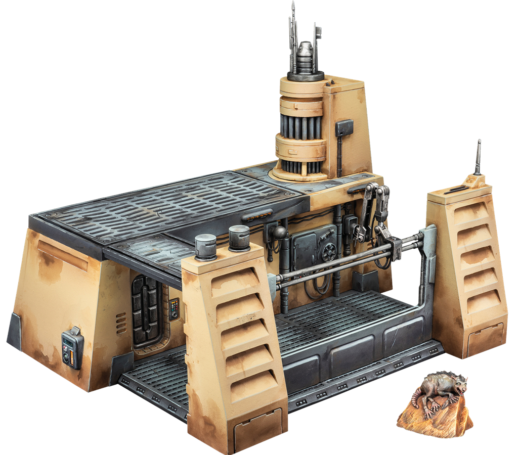 Este pack de terreno amplía tus campos de batalla de Star Wars™: Shatterpoint con un taller mecánico y una rata womp que aportan un gran elemento de escenografía muy temático a las batallas que libres en una galaxia muy, muy lejana.
