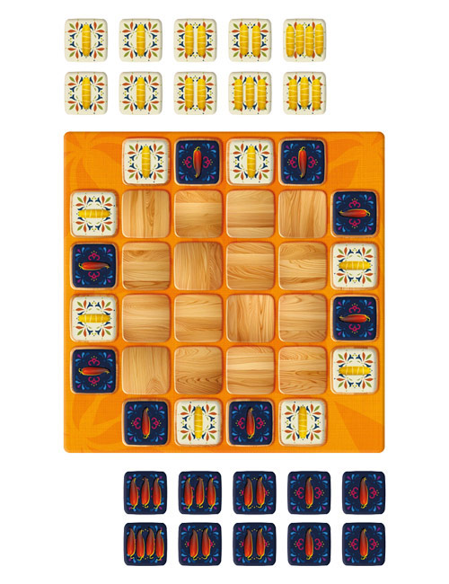Coloca tus en el tablero, empujando las de tu oponente para sacarlas. Devora las tapas de tus oponentes sin dejar que estos coman demasiado de las tuyas.