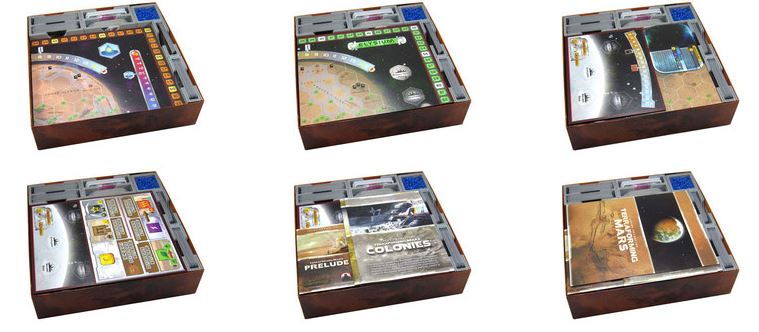 Inserto compatible con Terraforming Mars® , e incluye espacio para la Hellas y Elysium ® , Venus Next®, Preludio ® y Colonias ® . Inserto también compatible con Conflictos®.