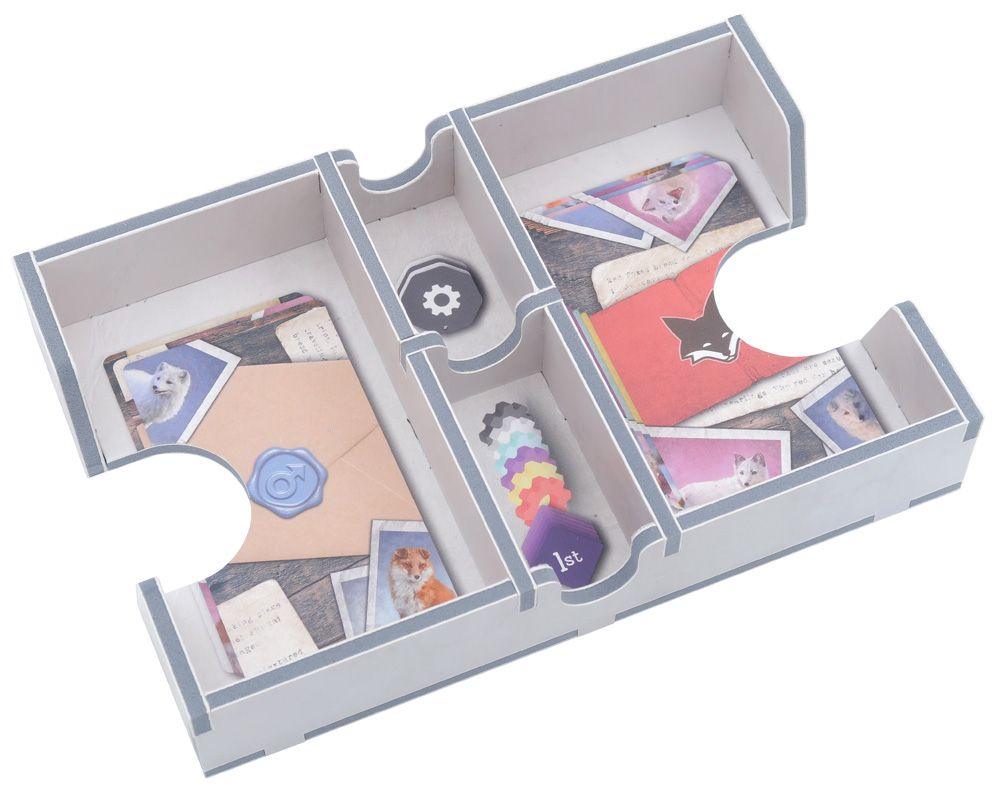 Las bandejas están dispuestas en dos capas, con la capa superior colocada alrededor de un hueco para el tablero de juego principal. Cada jugador recibe una bandeja de color para usar durante el juego. Las bandejas de cartas de estudio y ciencia están diseñadas para colocarse directamente sobre el tablero. Todas las cartas de tamaño normal pueden enfundarse. Las cartas de zorro no pueden enfundarse, pero esto no es necesario, ya que están hechas para escribir en ellas con rotuladores borrables.