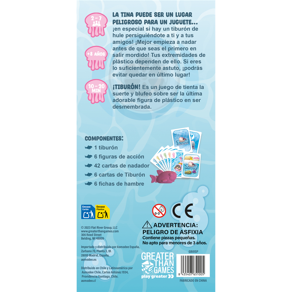 ¡Tiburón! Es un juego de tienta la suerte y blufeo sobre ser la última adorable figura de plástico en ser desmembrada.