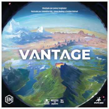 Vantage es un juego de aventuras cooperativo de mundo abierto ambientado en un planeta que se explorará en sesiones independientes. Cada sesión empieza con los jugadores dispersos al azar por el mundo. Con aproximadamente 800 cartas de localización interconectadas y más de 900 cartas adicionales, el mundo será tu zona de juego.
