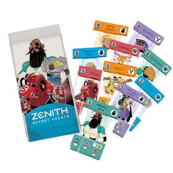 Agentes Secretos es la expansión de Zenith que incluye 10 nuevas cartas de Agente que añaden giros inesperados y nuevas formas de aprovechar lo que hace tu adversario.